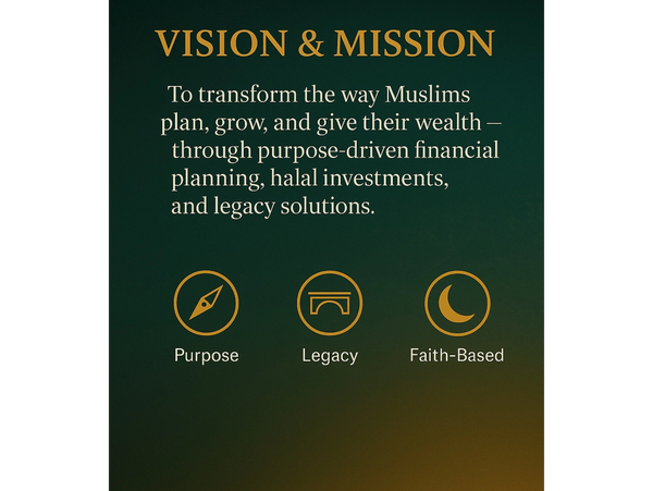 To transform the way Muslims plan, grow, and give their wealth — through purpose-driven financial planning, halal investments, and legacy solutions grounded in Islamic values.